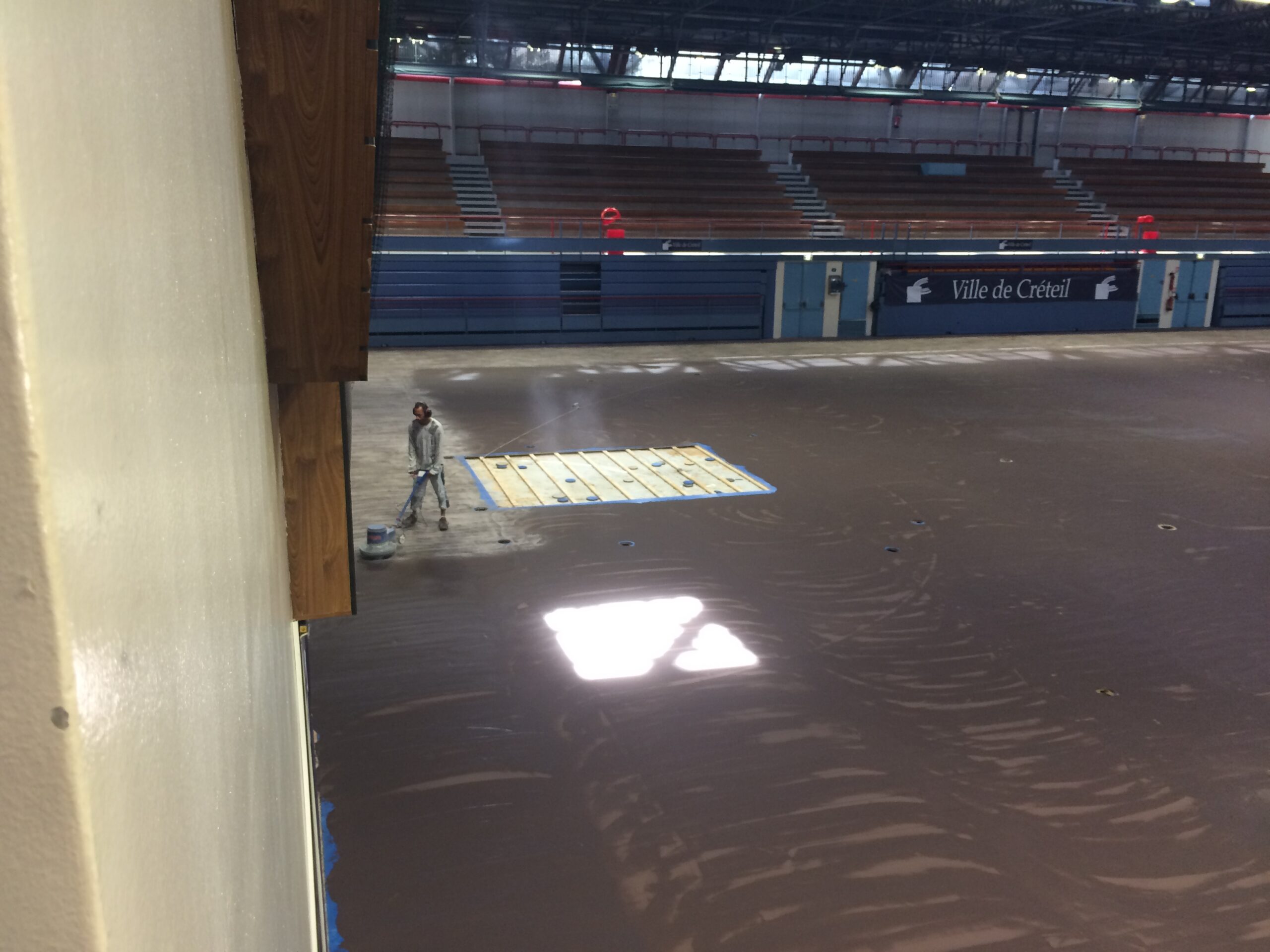 Trois semaines de travaux (ponçage du parquet, renforcement de certaines zones, remplacement de planches du parquet…)  ont été nécessaires à la mise en place du nouveau revêtement Taraflex, livré par l’entreprise Gerflor. Aux normes EHF/IHF, ce revêtement est notamment  utilisé lors des compétitions internationales de handball moderne.